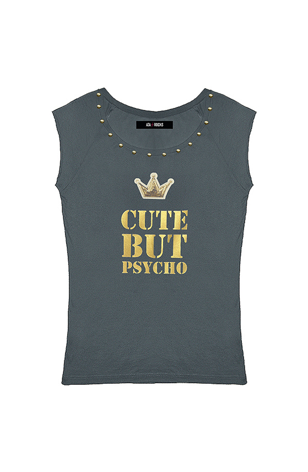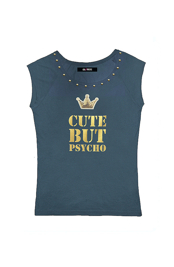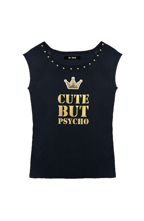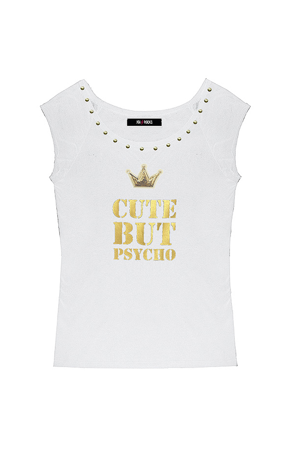 Estampado CUTE BUT PSYCHO en oro.