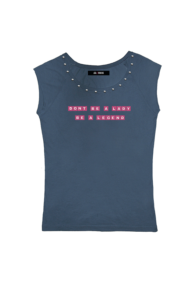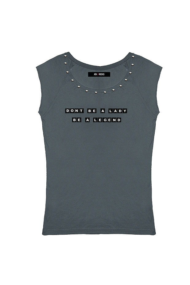Camiseta bambú manga raglán mujer, con amplio cuello.  Estampado DON´T BE A LADY BE A LEGEND. Tachuelas plateadas en escote.