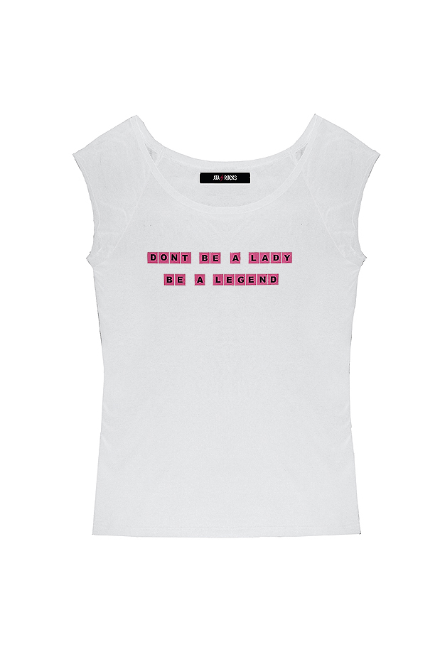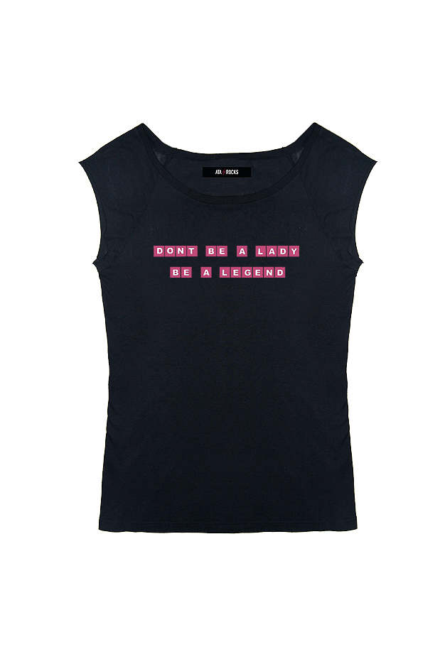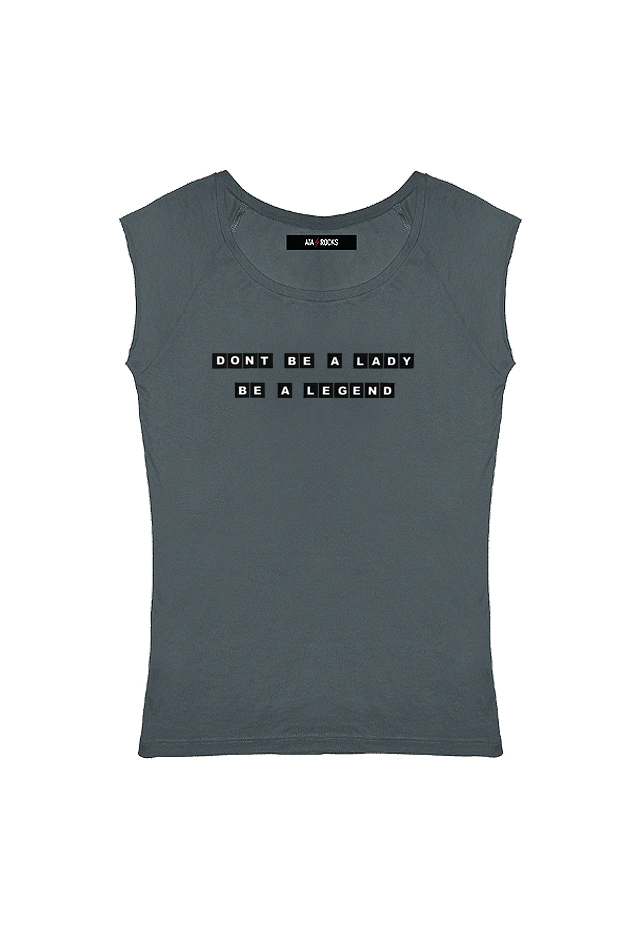 Camiseta bambú manga raglán mujer, con amplio cuello.  Estampado DON´T BE A LADY BE A LEGEND.