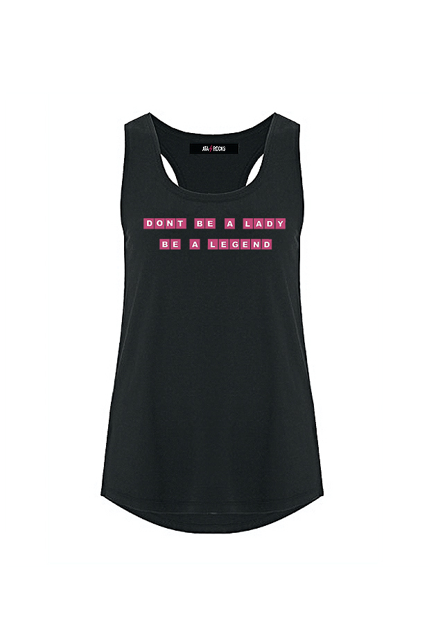 Camiseta de tirantes, espalda cruzada, tipo nadador. Estampado DON´T BE A LADY BE A LEGEND.
