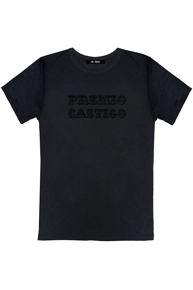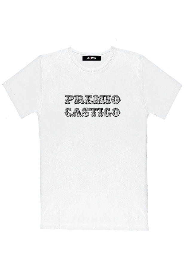 Camiseta bambú manga corta, con cuello caja.  Estampado PREMIO CASTIGO.