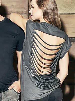 Camiseta bambú mangas cortadas manualmente, con cuello caja. Patrón fit.