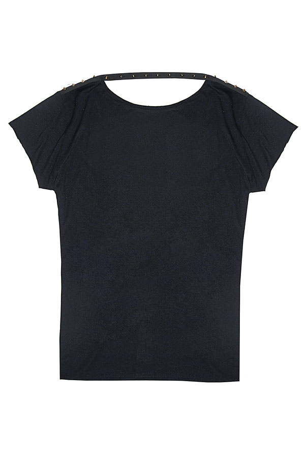 Top con espalda al aire, de bambú con mangas y bajo sin rematar. Cuello amplio.Patrón oversice. Con tira de pinchos de hombro a hombro. Trabajado artesanalmente.
