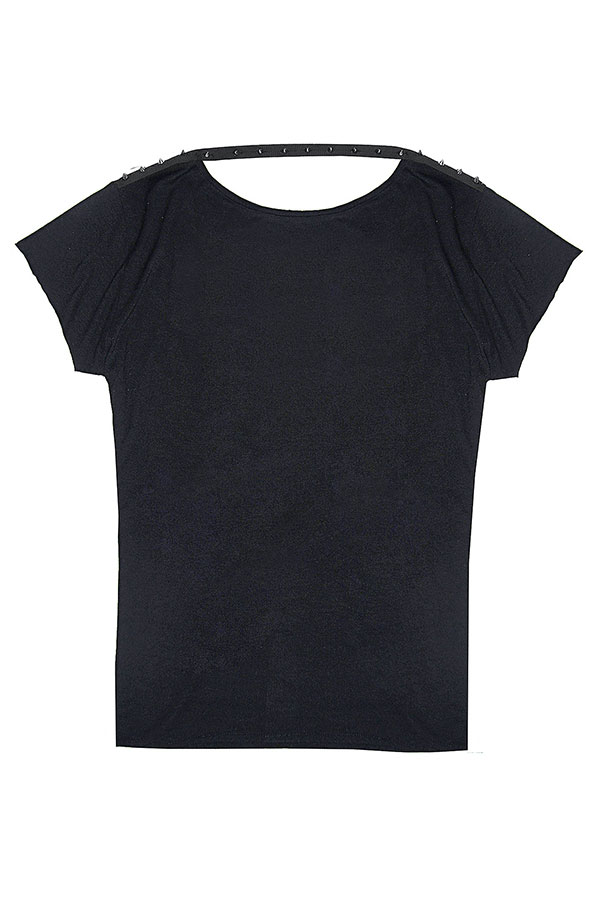 Top con espalda al aire, de bambú con mangas y bajo sin rematar. Con tira de pinchos de hombro a hombro. Trabajado artesanalmente.
